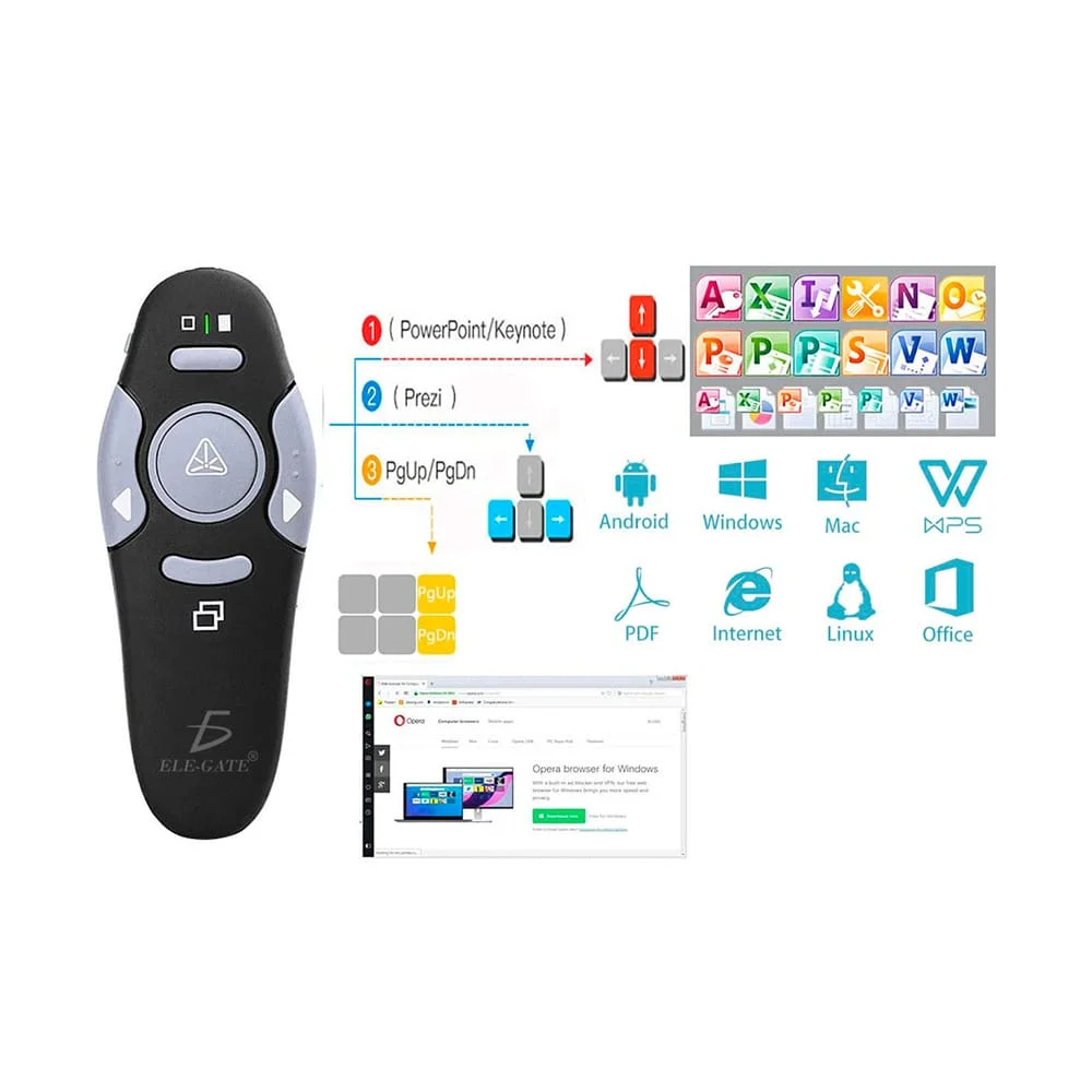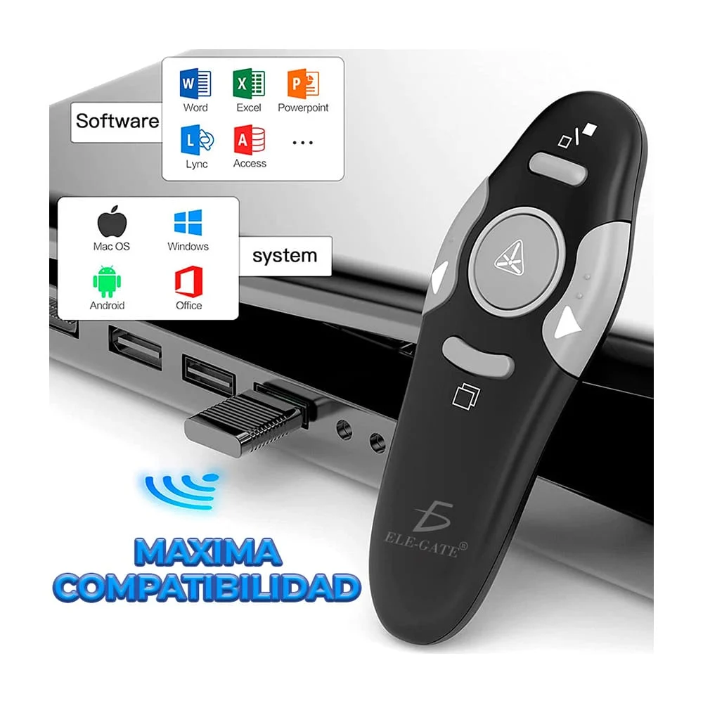 - Compatibilidad universal: Funciona con una amplia variedad de sistemas operativos (Windows, Mac OS, Linux, Android) y software de presentación (PowerPoint, Google Slides, Keynote, etc.).